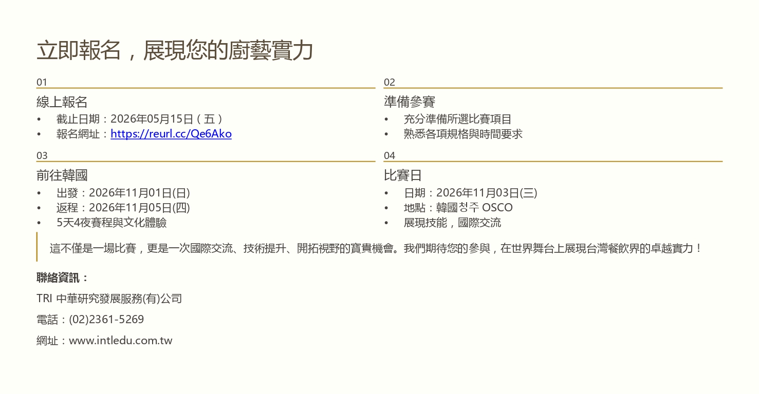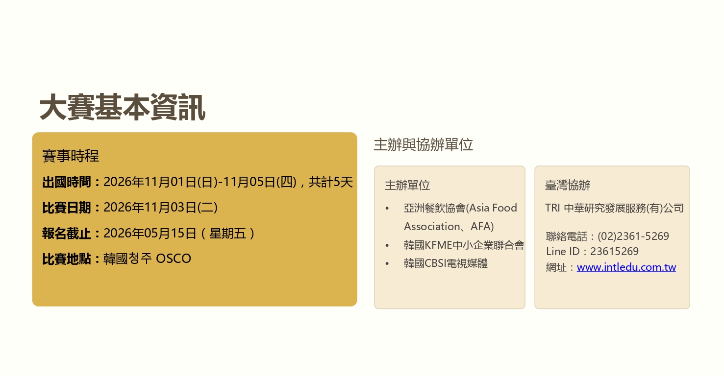 2026 AFA韓國世界廚藝大賽簡章